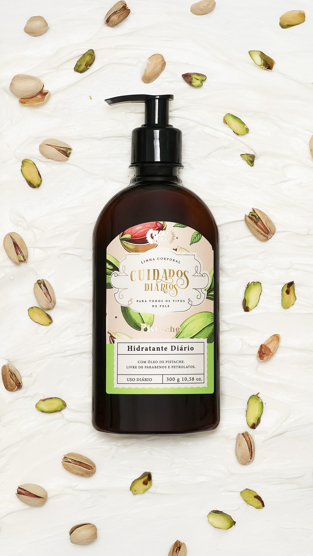 em nutrientes essenciais, inspirada no poder hidratante e restaurador do pistache,