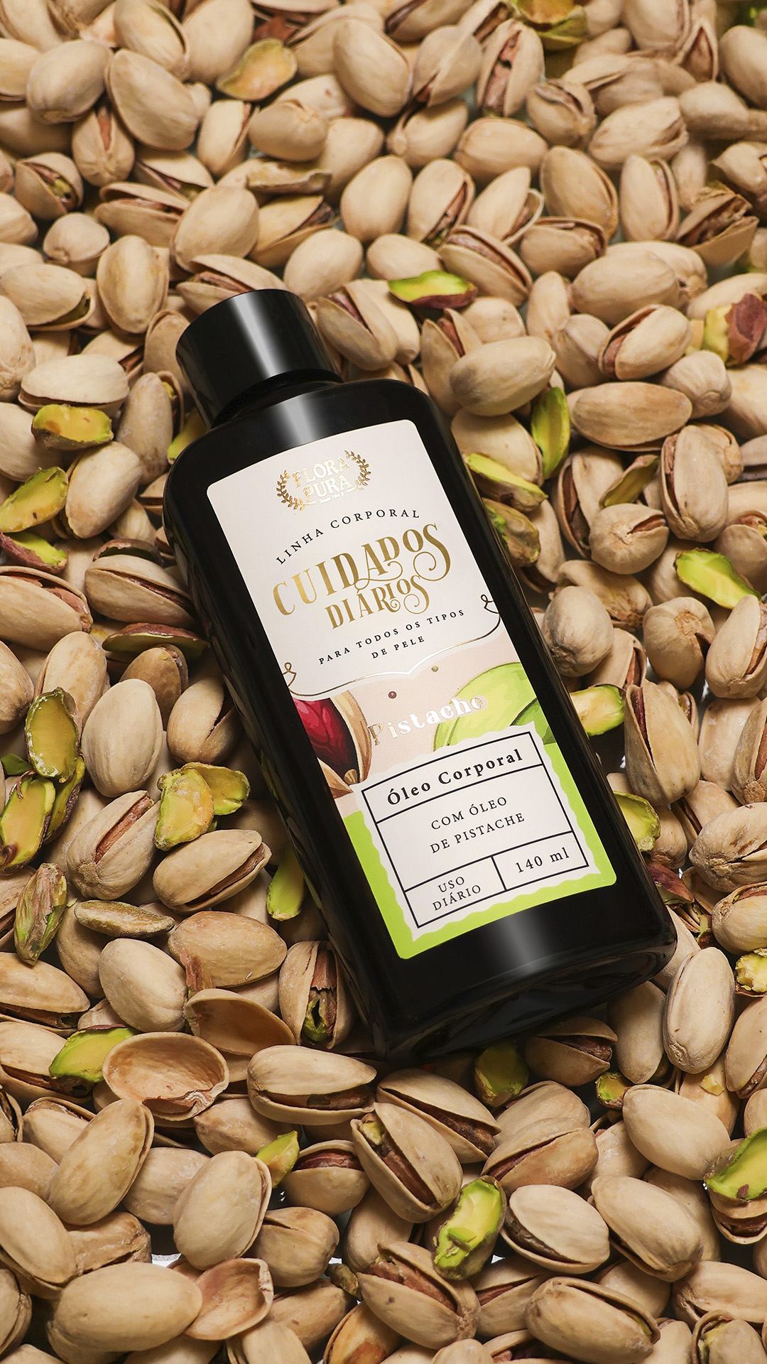 Ingredientes: Óleo de Pistache, Óleo de Amêndoas, Vitamina E, Fragrância.